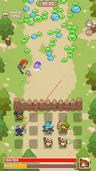 把角色安排到战斗布局的空位里,借助他们的能力去攻击各种怪物,这样就能推动当前关卡的进程。