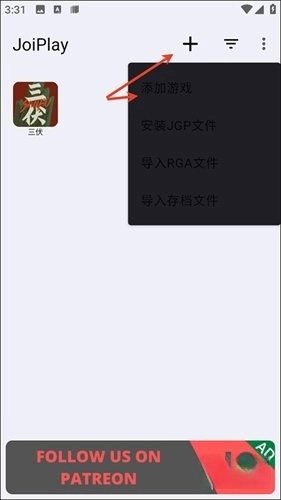 完打开模拟器点击右上角的+号在选择添加游戏。