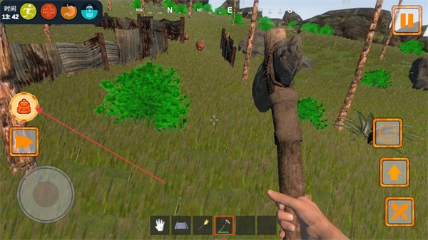 操控角色接近树木,借助工具收集木柴之类的资源,积攒生存所需的材料。