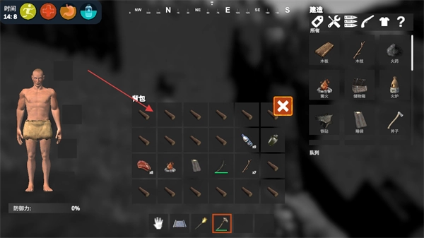 打开背包界面,查看已收集的资源如木头、工具,管理物资库存。