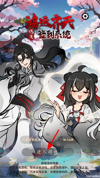 点击“进入游戏”按钮,即可开启“鸿运齐天”的修仙玩法,这是进入天赋选择与资源积累流程的基础操作;后续还需借助天赋搭配与日常玩法,来推进修仙进度。
