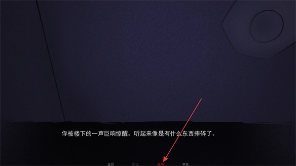 当你看到剧情文本显示“你被楼下的一声巨响惊醒,听起来像是有什么东西摔碎了”时,点击自动按钮就能推进剧情。