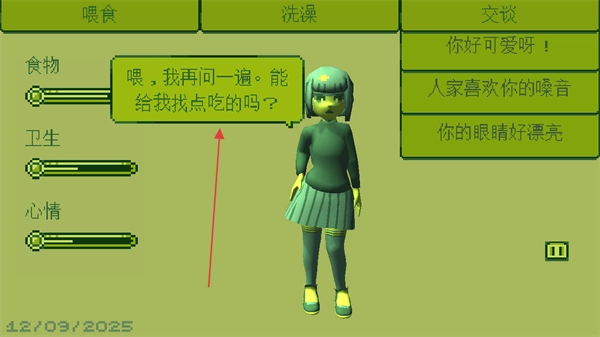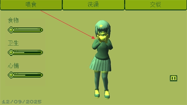 当电子女孩提出寻找食物的需求时,就切换到喂食界面,以此提升她的食物进度条。