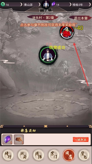 完成【迷失村·第1章】的挑战后,点击“闯荡下一章”即可获取更多资源,助力你快速积累修仙所需的材料与道具。