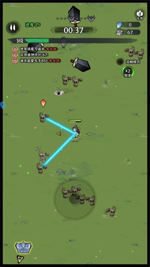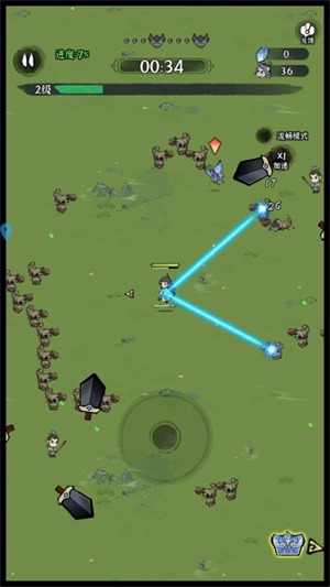 进入关卡后,通过移动摇杆来操控角色移动,角色会自动攻击出现的敌人。