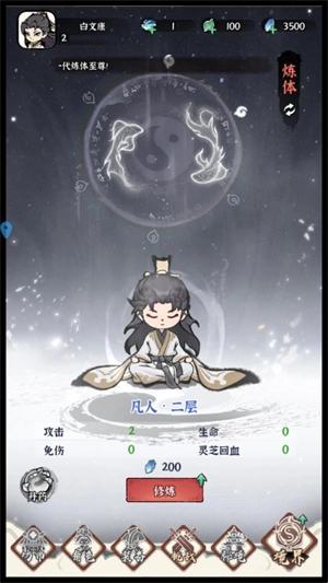 在主界面点击修为按钮,能够提升角色的属性等级,从而让你拥有更强大的战斗力。