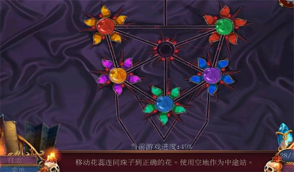 玩家需要把花蕊移动到对应颜色的珠子上,具体移动方式为:绿色花蕊向上移动,蓝色花蕊向下移动,绿色花蕊向右移动,紫色花蕊向右移动,黄色花蕊向下移动,这样就能解开谜题啦。