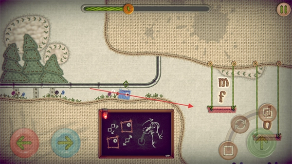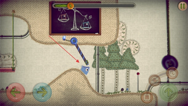 把蓝色小怪物移动到目标区域,借助黑板上的线索来推进关卡解谜。