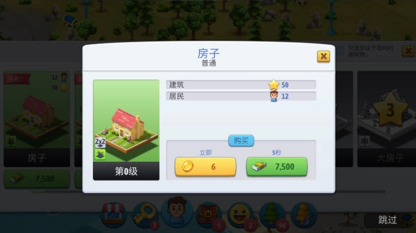 跟随新手引导使用货币建造我们的第一个建筑,民房。