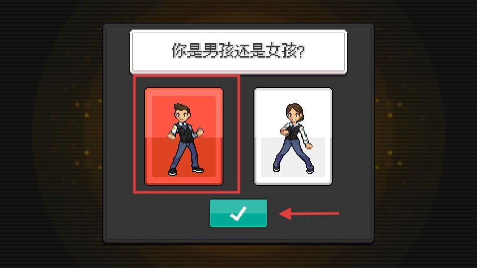 游戏开始时需要选择角色的性别,选定【男孩】或者【女孩】后,点击确认按钮就能进入游戏。