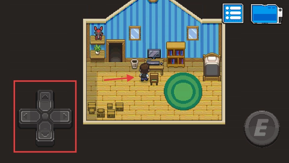 进入房间场景后,通过操作左侧方向键来控制角色移动,以此探索房间里的各类物品和不同区域。