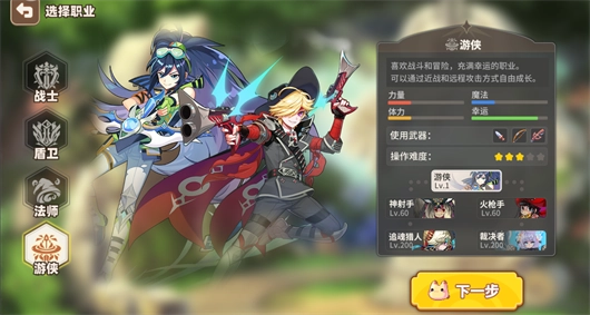 游侠:这是一个热爱战斗与冒险、自带幸运属性的职业。它能灵活选择近战或远程攻击路线来发展,后续可转职为神射手或火枪手,最终进阶为追魂猎人或裁决者。