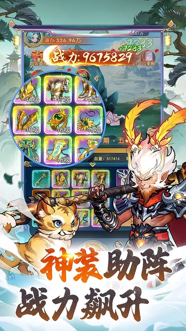 游戏采用Q版仙侠风格设计,不仅有威风凛凛的侠客、神秘莫测的龙女、活泼灵动的小猴子等Q萌角色,还有从神奇石头中掉落的至宝装备。