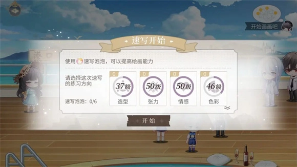 每次速写仅能选定一个地点进行创作。速写前的元素收集,既可以借助右上角的一键收集功能快速获取,也能自行在场景中逐步探寻积累。此外,使用速写泡泡能够提升各类经验值以及画技经验。
