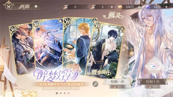 在活动池中,所有活动卡平分70%的概率,其余30%由常驻卡池中除“月与晨星”和“暗夜圆舞”之外的所有卡平分。活动卡池可以许愿,如果许愿的是ssr,则许愿的画灵必为第一张活动卡,并且如果第一张歪常驻卡,则第二张ssr必为许愿卡。如果许愿的是sr,则该sr十连必出(注:这里的十连是指一次性绘制十次,不包括单抽。有且仅有活动池有许愿机制。活动池和生日池有绘制奖励。活动池可以点击绘制一次左边的放大镜查看活动卡的满级满特小技能双十的数值。