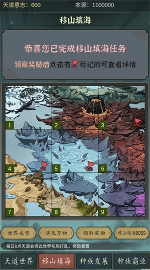 自由掌控世界:身为天道,你能够自主地改变世界的地理风貌,例如挪走一座山峰或是填没一片海洋。