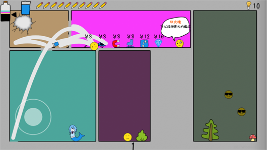 开局直接前往商店,优先购买能延长3秒无敌时间的道具;若没有这款,就选生命值低于25%时触发秒杀效果的;要是前两者都缺货,再考虑擦除力+1的道具。注意别买大橡皮,这玩意儿会在地面砸出大坑,直接导致无法跳跃通过。