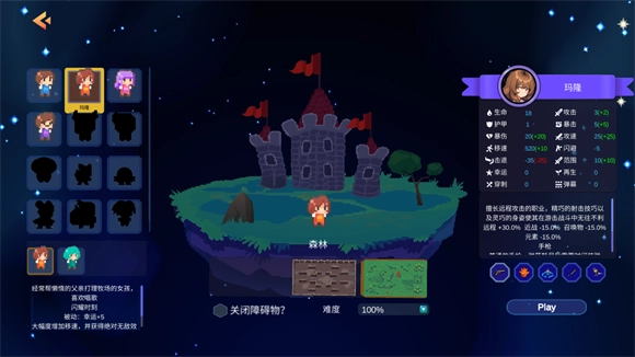 游戏开始时,请挑选一个你想操控的角色,不同角色的属性和技能各有差异。