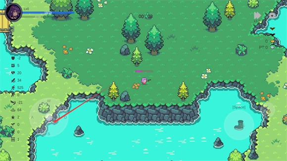 进入游戏后,玩家能够借助轮盘操控角色移动,角色在遇到怪物时会自动发起攻击。