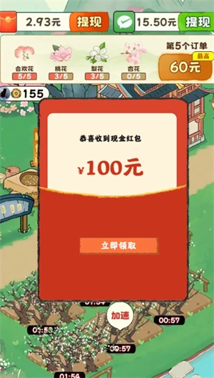 玩家完成订单任务即可获取红包,这些红包是支持提现的。新手刚进入游戏时,轻松完成一两个订单就能进行提现操作。游戏里的所有提现都采用百分比模式,完成的订单数量越多,对应的提现比例也就越高。