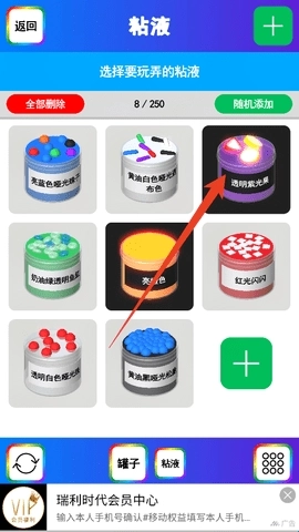 1、要是想制作出好看的泥,我建议选用那些带发光效果的粘液,因此我选择了“透明紫光效”。