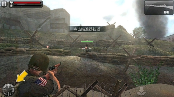 3、用手指拖动来瞄准目标,点击开火按钮即可射击。