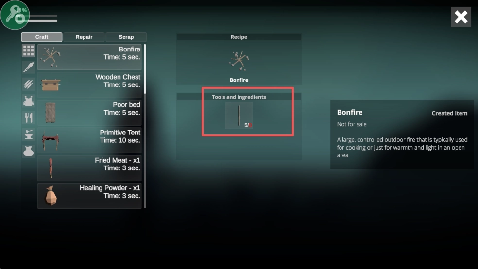 4、你要去探索这片荒芜的世界,搜寻食物,打造趁手的工具