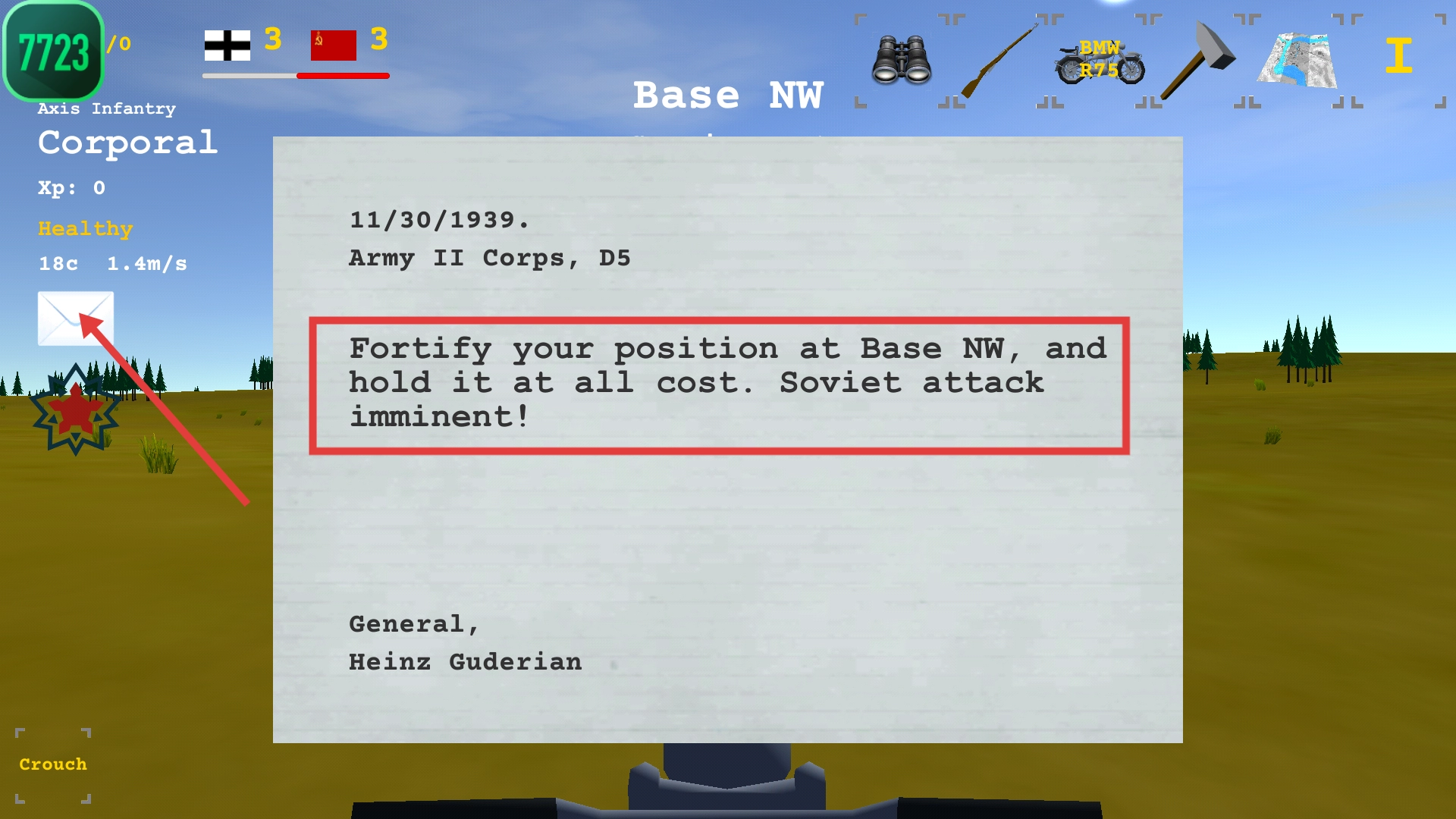 4、查阅邮件,执行【Fortify-your-position-at-Base-NW】指令,全力固守基地,抵御苏联方面的进攻。