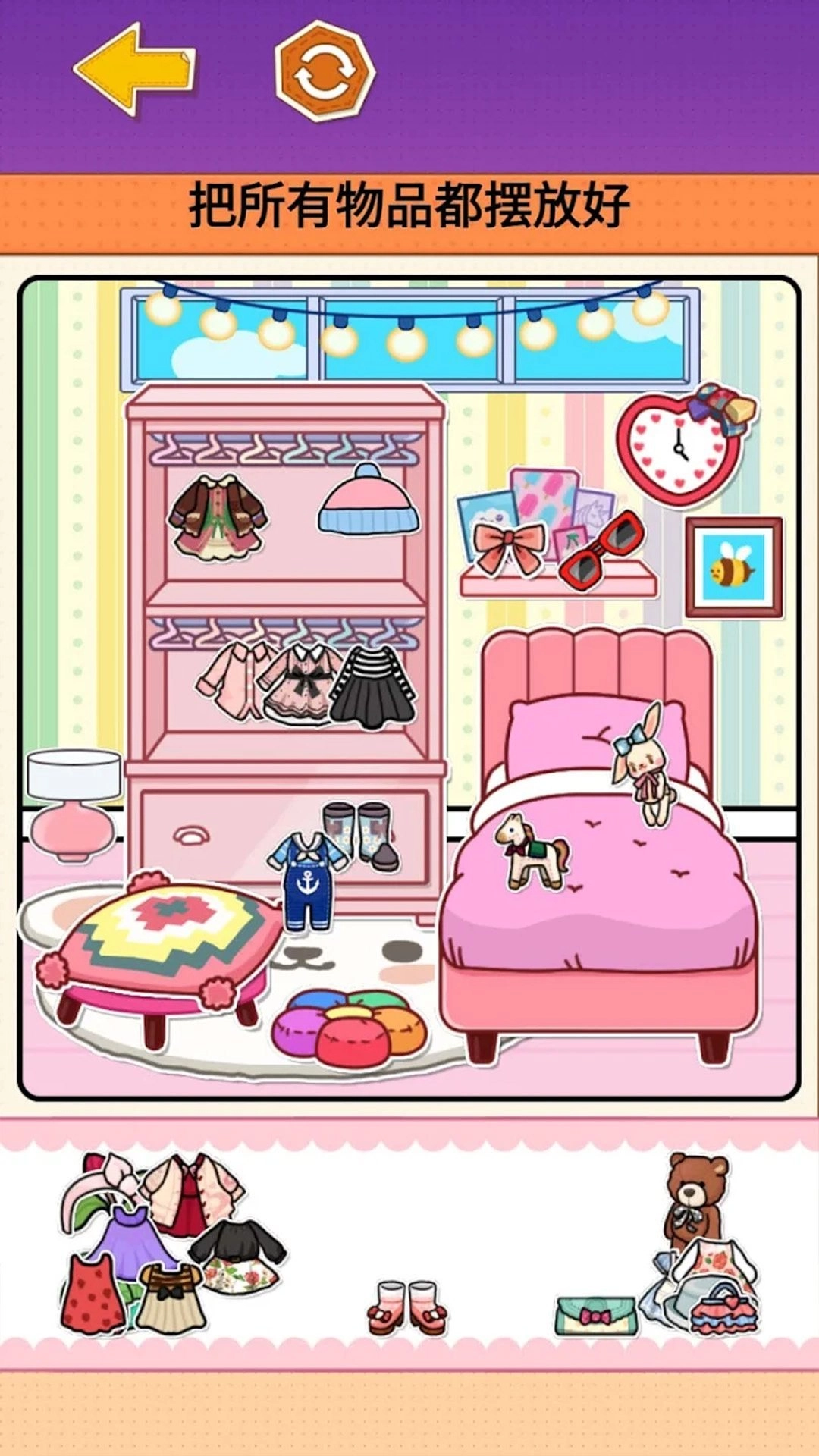 3、丰富的物品系统:游戏内的物品种类极为多样,涵盖了各类家居用品、文具、玩具等不同类型。玩家能够借助收纳这些物品的过程,深入认识它们的用途与特性。