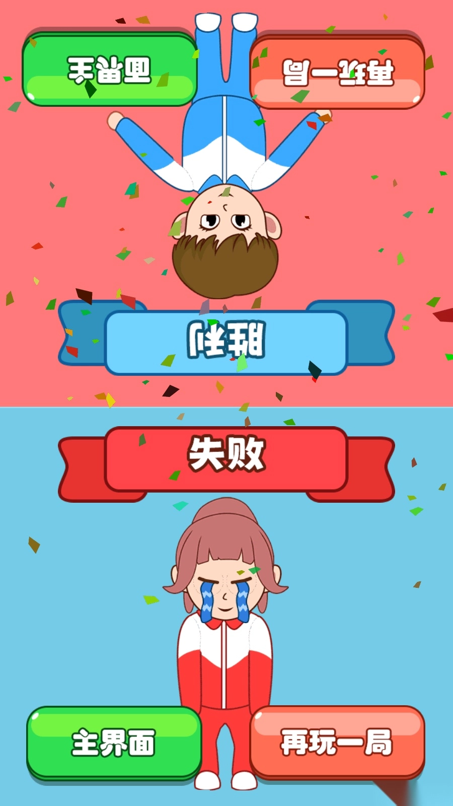 5、通过多次攻击达成胜利后,游戏会展示对战结果页面,同时提供“再来一局”和“返回主界面”的操作选项