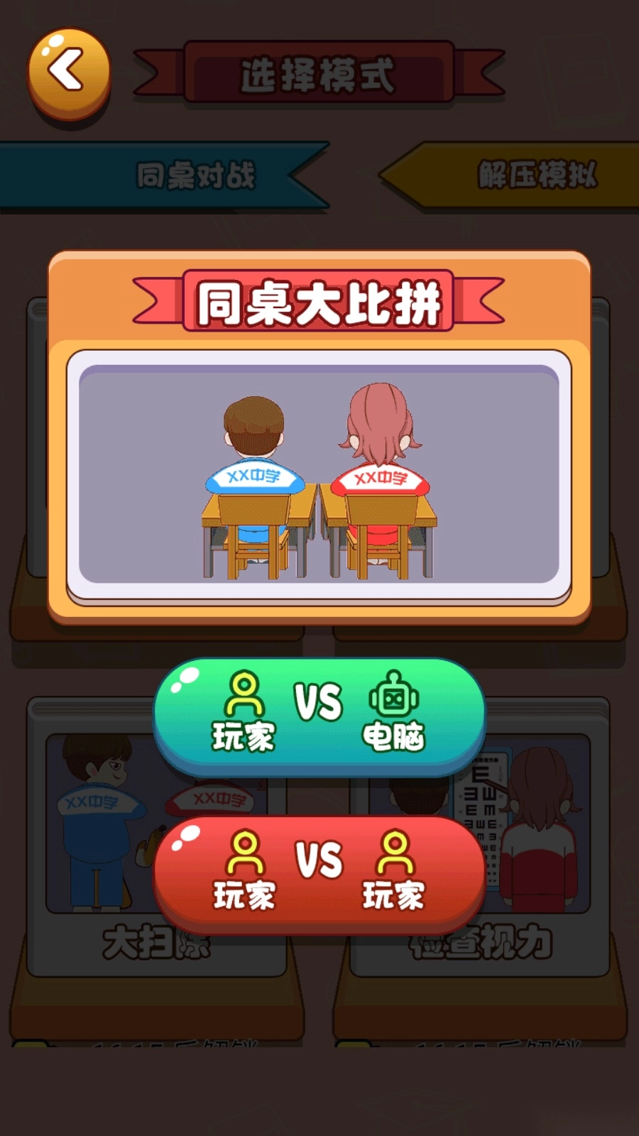2、这是游戏的玩法界面,能够选择不同模式,还支持同桌之间的大比拼。