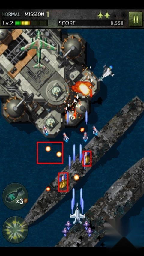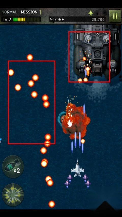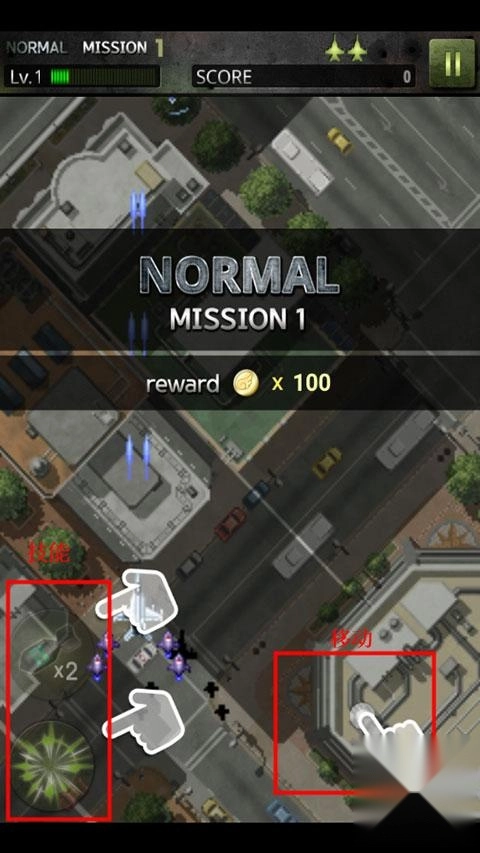 1、进入游戏后,滑动屏幕即可操控飞机移动,界面左侧设有两个可供使用的技能。