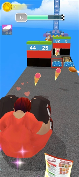 《健身房终结者》是一款把跑酷和节奏点击玩法结合起来的趣味休闲游戏。玩家要化身成一个一心想摆脱束缚的“吃货”,任务就是从健身房里逃出去,顺利到达终点。游戏操作是滑动屏幕让角色左右移动,路上得收集汉堡、炸鸡这类高热量的食物来补充能量,角色能跑多快全看能量够不够。遇到障碍墙的时候,得用掉一定的能量才能穿过去;要是碰到地刺这种能要命的陷阱,就得灵活地躲过去。等成功到了终点,游戏就会进入第二阶段——快速点击屏幕完成拳击挑战,点击得有多快,假人能飞多远、最后金币奖励能翻几倍就由这个决定。