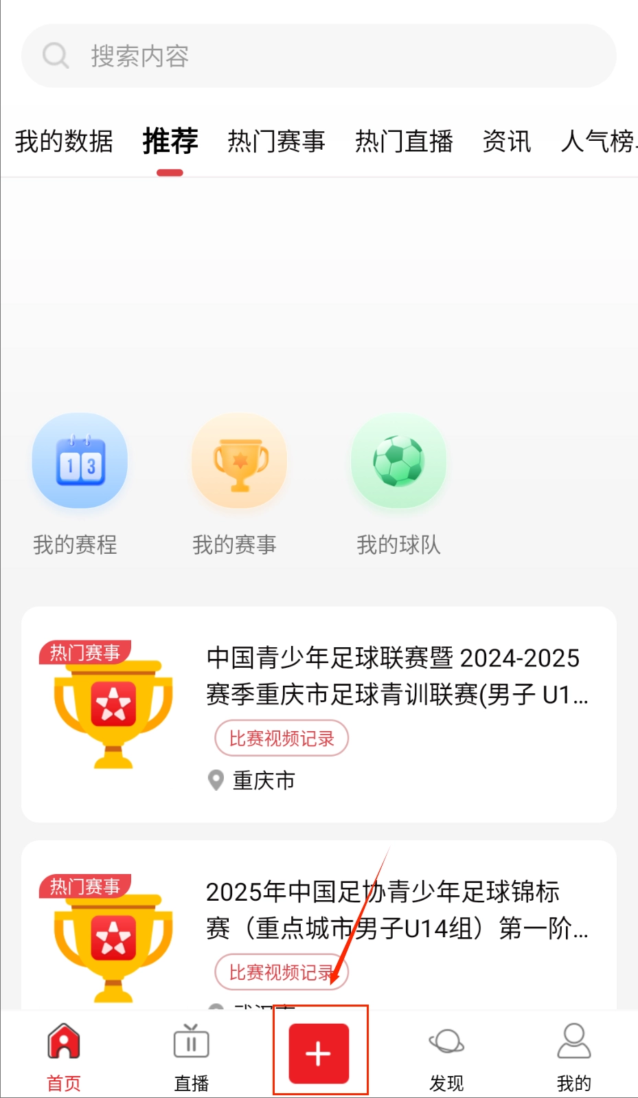 1、进入我是球星之后点击底部的+号按钮。