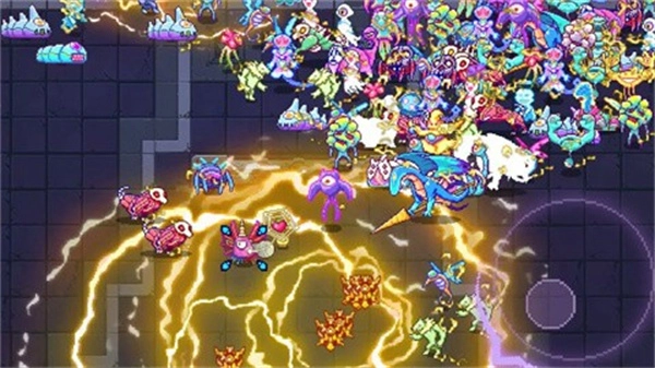2、当生物数量足够时就可以开启游玩了,操作方式十分简便——左侧的摇杆用于操控角色移动,角色会自动释放技能,玩家只需专注于调整角色的走位,尽可能避开敌人的攻击伤害即可。