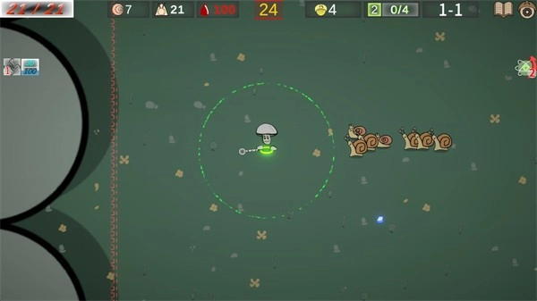 3、通过左侧操作来控制角色移动,角色会主动攻击靠近的敌人,击败敌人后会掉落晶石,等待你去收集。