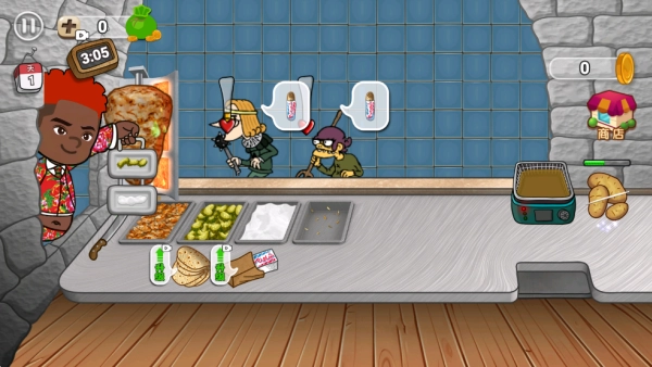 1. 这是一款围绕卷饼店运营展开的模拟游戏,玩家将以店主的身份,在规定的营业时间里完成经营任务。