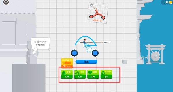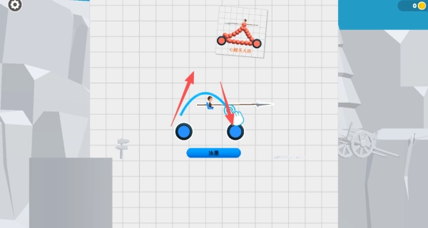 1. 玩家进入关卡后,将得到空白画布与基础绘图工具,需依据地形特征设计出可移动的创意载具。