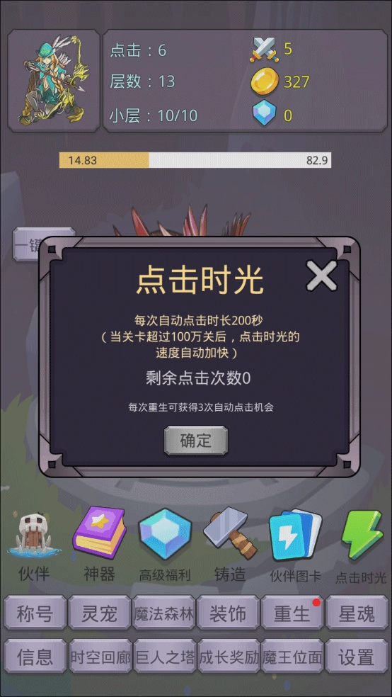 点击时光,升级消耗少,双倍跳关的效率不输连点器。