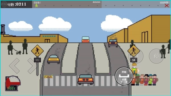 3、游戏场景里会随机出现汉堡车,它能提供一些增益道具,比如可以一次性护送多名孩子的道具。游戏里还设置了时间加速的功能,这是一种高风险但也可能带来高回报的玩法,能让玩家在短时间内获取大量分数。1、借助像素化的美术风格、角色极具张力的动作演绎以及天马行空的剧情设定,巧妙构建出紧张与诙谐交织的独特游戏氛围。