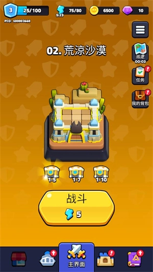 1、进入游戏后点击中间的战斗开始闯关