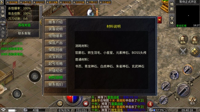 1、消耗材料:官爵石、转生羽毛、小星星、元素神石、BOSS头颅。