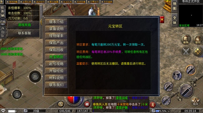 2、转区费用:每笔转区收20%手续费,可转任意所有区包括任何战区。