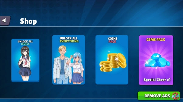 3、点击左下角的“shop”商店,即可购买解锁新角色与全部关卡。