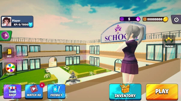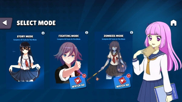 这里提供了三种模式,其中最有趣的当属故事模式,玩家能够在校园里自由活动。而打架模式则是PK玩法,玩家可以运用各类技能来击败对手。
