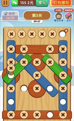 玩家只需移除木板即可通关,当所有木板都被移走后就能顺利过关。消除螺丝能够累积红包奖励,通关后就能领取红包。关卡中还有不少额外挑战等待完成,持续完成更多挑战就能获取更丰厚的奖励哦。