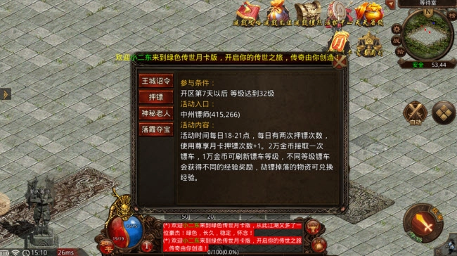 1、这是一款主打绿色复古风格的传世月卡游戏,新区开放周期为30至60天。