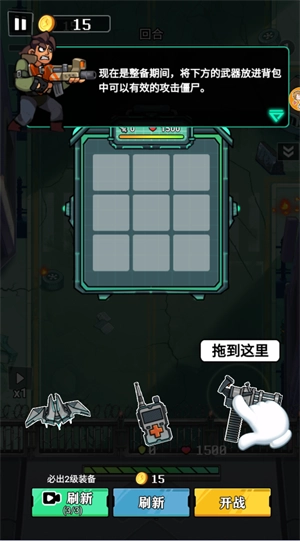 1、要把背包下方的武器放进背包里,这样能更有效地攻击僵尸。