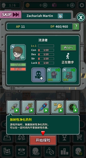 4、终于抵达了探险区域。这片区域已遭受放射性污染,持续对居民造成伤害,在居民的HP降至0之前,务必返回探险起始的当前人口所在地。