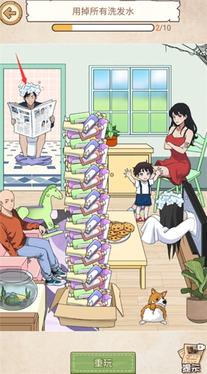 10、点击右侧的柜子,把假发给光头男,再将洗发水给他